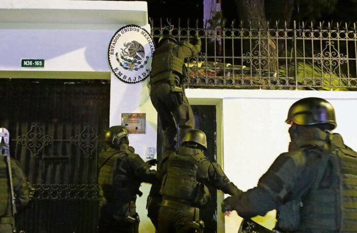Además, la entonces embajadora de México en ese país, Raquel Serur, fue declarada persona non grata, decisión diplomática considerada como “desproporcionada”, mientras que el jefe de Cancillería y Asuntos Políticos de la Embajada, Roberto Canseco, fue sometido por defender este espacio mexicano. Personal de guardia de la sede diplomática también fue agredido por las autoridades ecuatorianas.