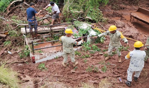 Y en San Luis Potosí, hay cinco municipios con daños, al menos mil viviendas afectadas, 25 derrumbes, cuatro corrientes desbordadas o con escurrimiento activo y un derrumbe “de gran magnitud”, según la CNPC.