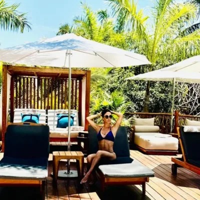 La cantante compartió en sus redes sociales una fotografía en la que se encuentra sentada en un camastro disfrutando y luciendo su figura torneada.