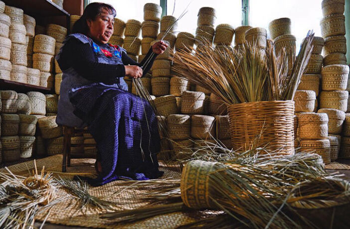 • Guerrero: alhajeros de palma tejida de Chilapa de Álvarez y cajas de madera laqueada con técnica de dorado a pincel de Olinalá