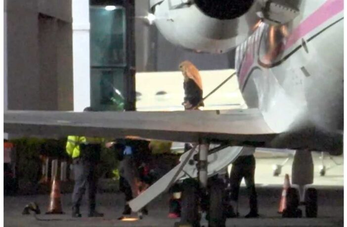 La “bichota” fue captada abrazando a sus compañeros en la pista de aterrizaje después de su salida del avión en emergencia, el cual, fue recibido por vehículos auxiliares del aeropuerto al momento del embarque.
