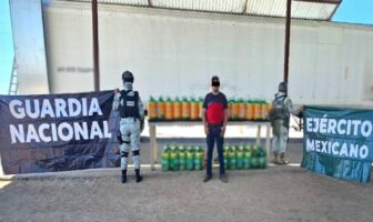 Fuerzas federales aseguraron en Sonora un tractocamión que transportaba más de mil litros de metanfetamina,…