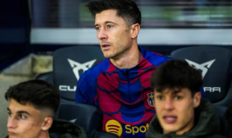 El técnico barcelonista Hansi Flick sienta a Robert Lewandowski en su visita al RCD Mallorca,…
