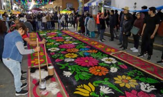 Tapetes monumentales de aserrín de colores de hasta 100 metros de largo realizados por artesanos se…