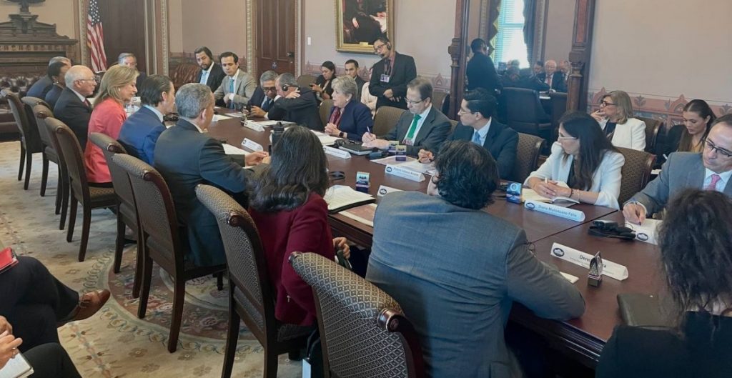 A través de redes sociales, la Cancillería informó que a la reunión acudió Amos Hochstein, asesor sénior de Biden para Infraestructura Global y Seguridad Energética de Estados Unidos, con el objetivo de impulsar las inversiones en México con el Corredor Interoceánico.