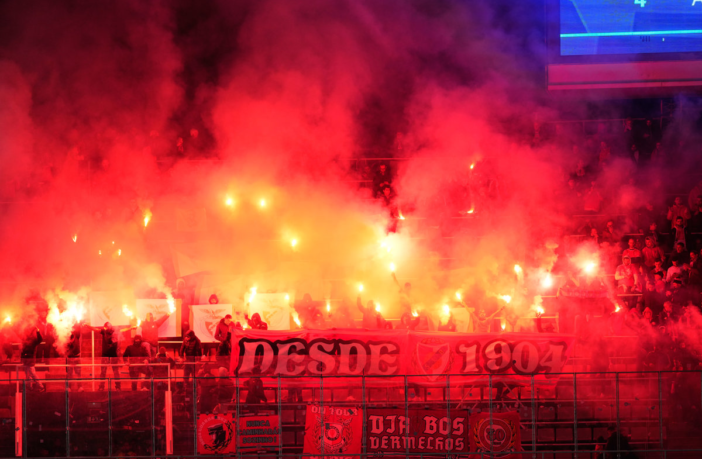En la vuelta, en el Olímpic Lluís Companys, los aficioandos del equipo portugués también lanzaron bengalas y protagonizaron enfrentamientos con la seguridad del estadio.