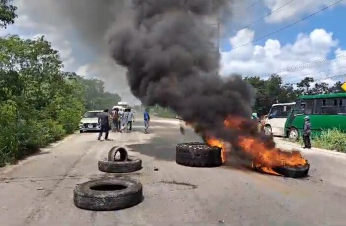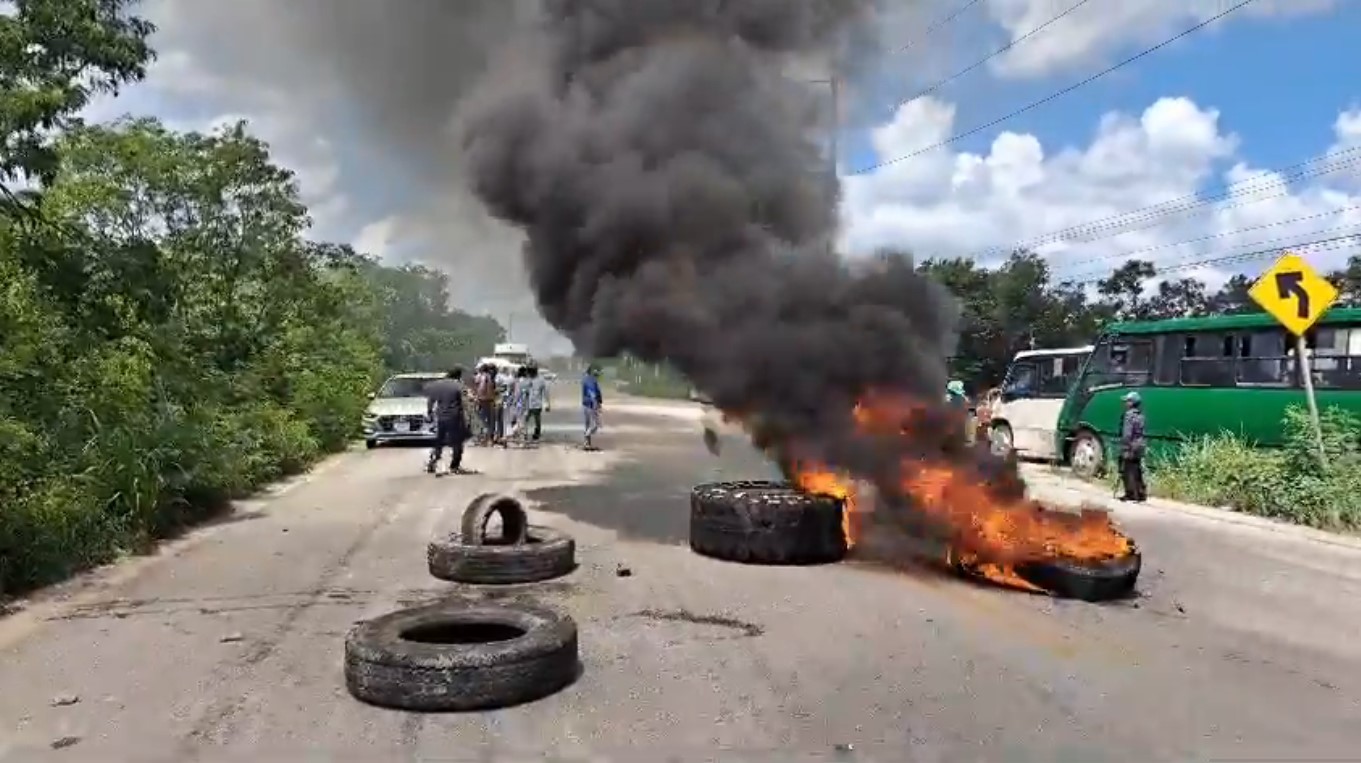 Los pobladores incendiaron llantas y presuntamente hicieron detonaciones de arma de fuego sobre la carretera federal 307 en el tramo Playa del Carmen-Tulum.