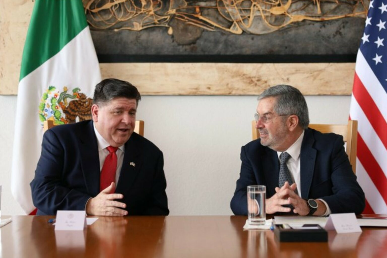 El canciller Juan Ramón de la Fuente recibió al gobernador de Illinois, JB Pritzker, para reforzar los lazos de amistad y cooperación entre México y dicha entidad de los Estados Unidos.