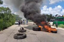 Habitantes del asentamiento irregular denominado Tren Maya en Cancún bloquearon una carretera que conecta con…