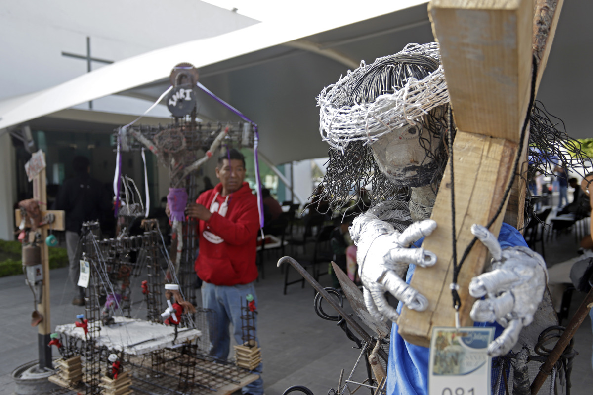 Trabajadores de la construcción celebraron este viernes el Día de la Cruz, también conocido como Día del Albañil, con una exhibición para la que elaboraron más de 70 crucifijos de varilla, alambre, cemento, clavos y otros materiales para edificar inmuebles.