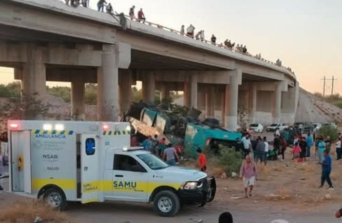 Un choque entre una camioneta tipo van y un autobús de pasajeros dejó como saldo al menos dos muertos y 29 personas lesionadas en Coahuila.