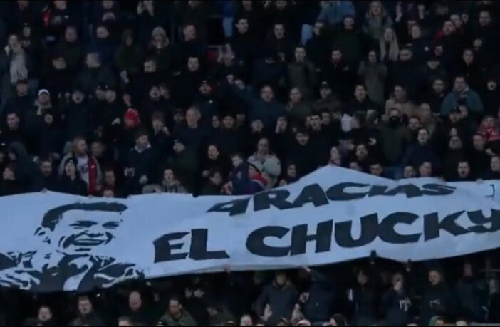 Mientras el ex del Pachuca se preparaba para entrar al campo, en la tribuna se coreaba “El Chucky Lozano”, además de que había camisetas con su dorsal, banderas de México y un enorme letrero blanco con la imagen del futbolista y la frase “Gracias El Chucky”.