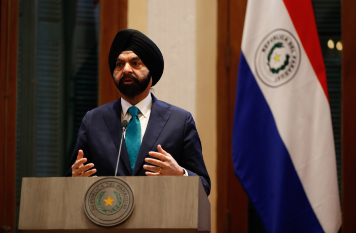 “La mejor manera de eliminar la pobreza es dar trabajo a la gente. Si le das trabajo a la gente, no solo les darás ingresos, sino que también les darás ganancias”, dijo Banga durante una conferencia en el Banco Central de Paraguay (BCP), como parte de su visita.