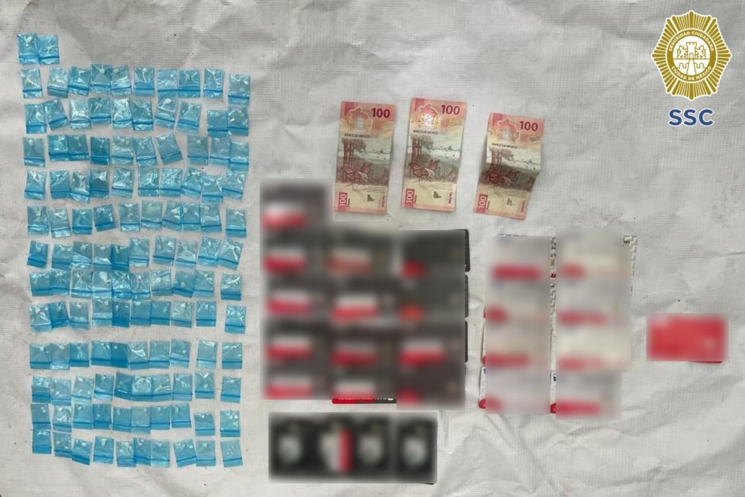 La Secretaría de Seguridad Ciudadana de la Ciudad de México (SSC CDMX) anunció la detención, en la alcaldía Benito Juárez, dos sujetos en posesión de más de 120 dosis de droga y 26 tarjetas bancarias.