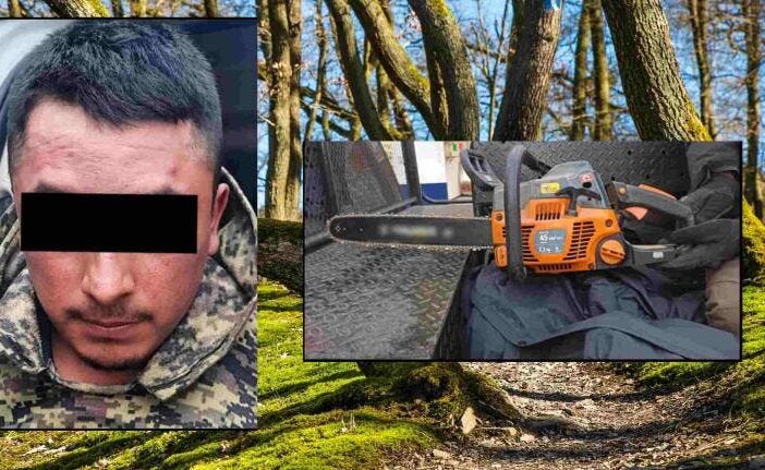 Al llegar al lugar, observaron a un hombre que talaba un árbol con una motosierra, mientras que el otro individuo seccionaba un tronco tirado en el suelo.