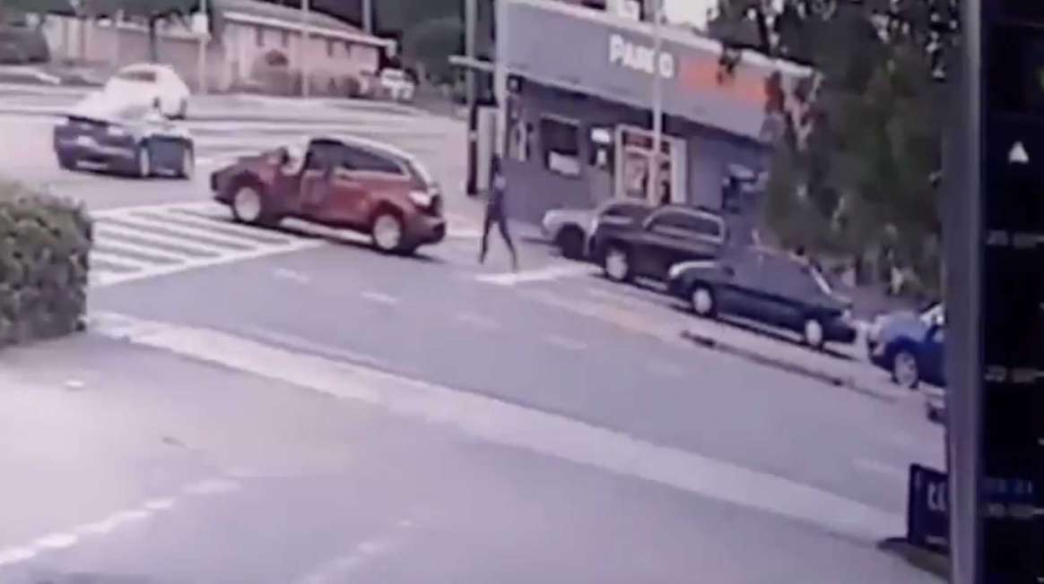 En el vídeo se aprecia cuando Juan Ricardo se acerca la camioneta de Pablo para reclamarle pero en ese momento se baja el conductor y se dicen de palabras mientras la camioneta seguía avanzando.