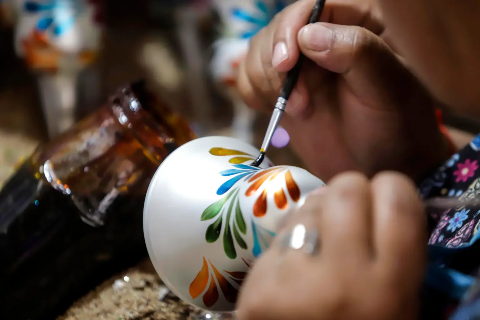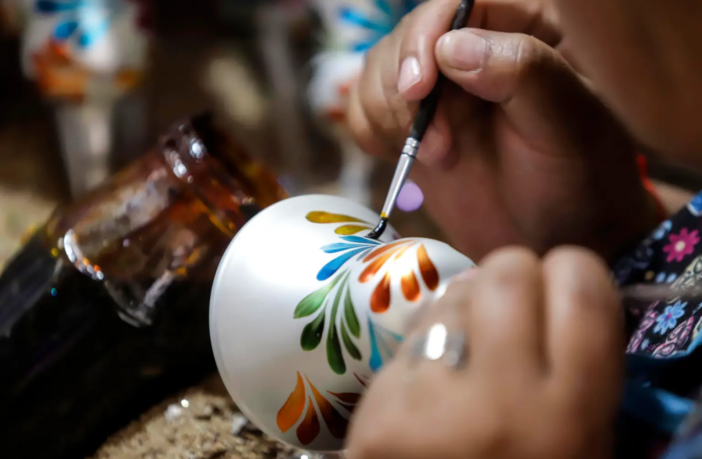 Y en el área de decorados los preparan para tener los diseños especiales, para después llevarlas a detalles como encasquillado, que es donde colocan la pieza con la que se puede colgar y empaquetar para que salga a venta.