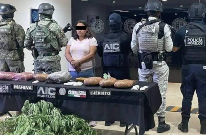 La captura se realizó mediante un operativo conjunto encabezado por la Fiscalía General del Estado de Morelos, con apoyo de elementos estatales, federales, de la Marina, el Ejército y la Guardia Nacional. En la intervención también fue asegurado un menor de 15 años y, durante la revisión, se encontraron envoltorios con droga, plantas de marihuana y tablas que, según las autoridades, podrían estar relacionadas con actividades ilícitas.