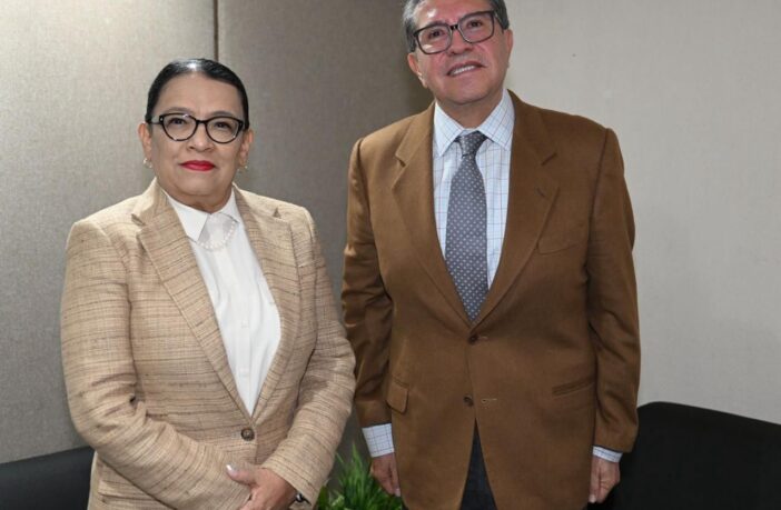 Subrayó que la presidenta de la República tiene en Rosa Icela a “una mujer de entereza, de convicción, congruente. Así ha sido a través de su historia en el servicio público. Por eso hoy nos sentimos complacidos, estimulados, orgullosos de que nos acompañe en la apertura de la plenaria de nuestro Grupo Parlamentario”.