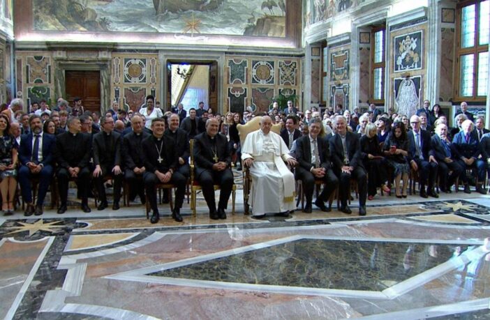 El papa Francisco se reunió este viernes con más de un centenar de humoristas y actores de comedia llegados de todo el mundo.