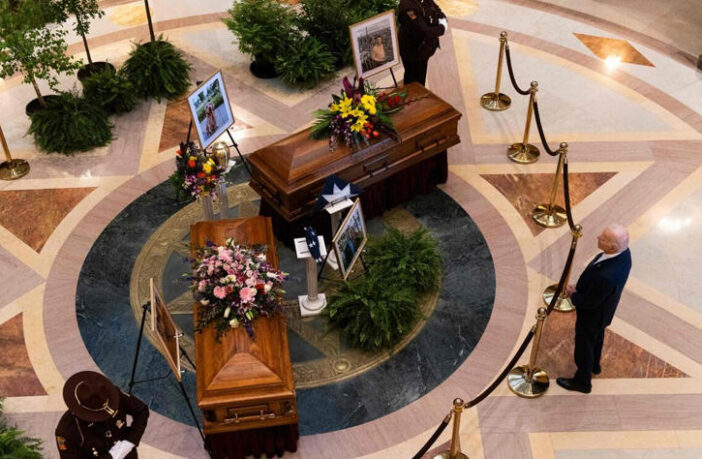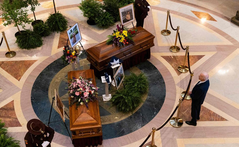 El expresidente estadounidense Joe Biden (2021-2025) y la exvicepresidenta Kamala Harris acudieron este sábado al funeral de la legisladora Melissa Hortman y de su esposo, asesinados el pasado 14 de junio.