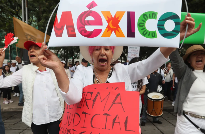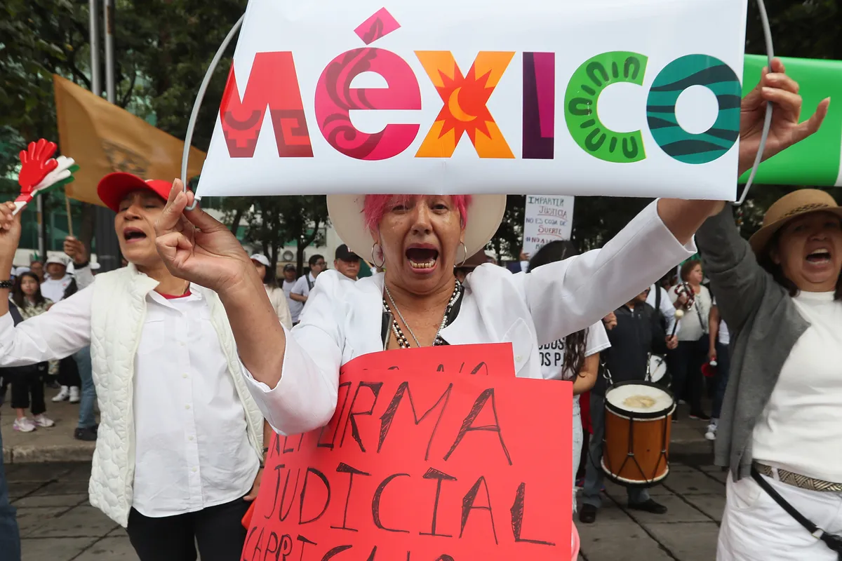 Los jueces bloquearon el Paseo de la Reforma, la principal avenida de la Ciudad de México, donde gritaban “¡Por ser imparcial, nos quieren afectar!”, “la independencia de poderes significa libertad”, “Poder Judicial, contrapeso nacional” y “juez votado, corrupto asegurado”.