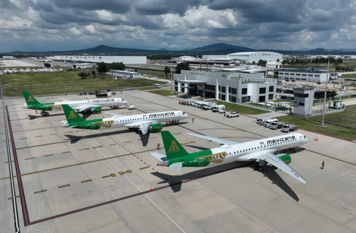 Mexicana indicó que las dos primeras aeronaves E195-E2, con matrículas XA-MXA Y XA-MXB, recibieron en plataforma “al nuevo integrante de la flota, enmarcando la primera ocasión en que los tres aviones de última generación de Mexicana coinciden”.