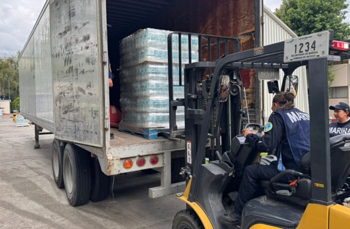 Como parte del Plan Marina en su fase de Auxilio se trasladaron desde la Ciudad de México mil despensas y mil litros de agua potable.