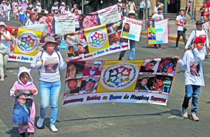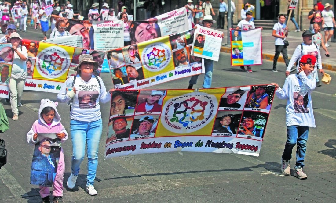 Los colectivos Corazones Unidos por Nuestros Tesoros y Luz de Esperanza marcharon desde la Glorieta de los Desaparecidos hacia Palacio de Gobierno, donde exigieron que la administración estatal asigne más personal a todas las dependencias involucradas en la búsqueda de personas y que la Fiscalía Especializada en Desaparecidos se convierta en un ente autónomo.