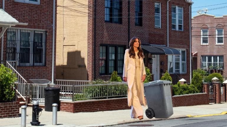 El Departamento de Higiene (encargado de la recogida de basuras) se sumó con astucia a las teorías sobre la ausencia de Middleton en la esfera pública y publicó hoy en su cuenta de X una imagen burdamente alterada superpone la figura de la princesa junto a la de un cubo de la basura frente a una casa típica de Nueva York.