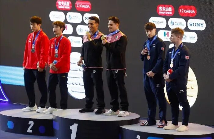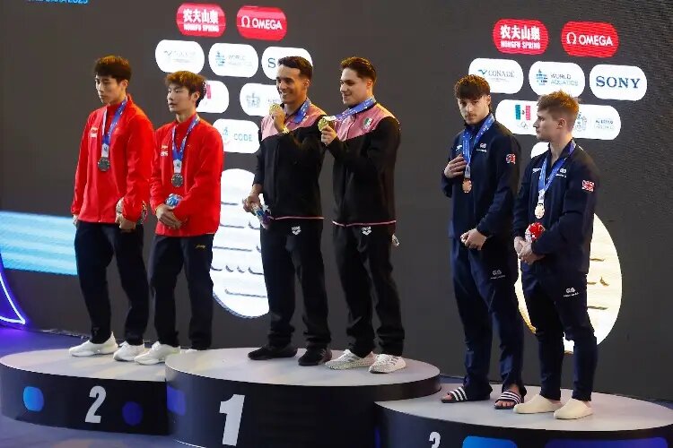 Con un elevado rendimiento al ejecutar un programa de alto grado de dificultad, los mexicanos se impusieron con 430.23 puntos, seguidos de los chinos Yukang Hu y Jiuhuan Zhang (413.16) y los británicos Anthony Harding y Jack Laugher (396.06).
