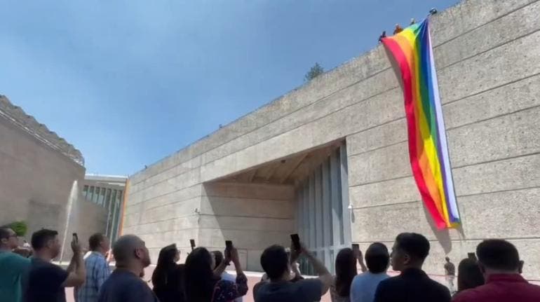 Otra vez colocan bandera LGBTIQ+ en sede central del Infonavit