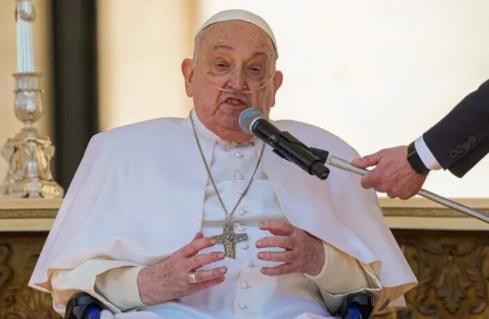 La voz del pontífice sonaba más fuerte que cuando se dirigió a los simpatizantes ante el hospital Gemelli el día de su alta el 23 de marzo, después de luchar contra una neumonía que puso en peligro su vida durante una estancia hospitalaria de cinco semanas. Acaba de completar dos semanas de al menos dos meses de descanso ordenado por los médicos mientras continúa con la terapia física, respiratoria y del habla, así como el tratamiento para una infección pulmonar persistente.