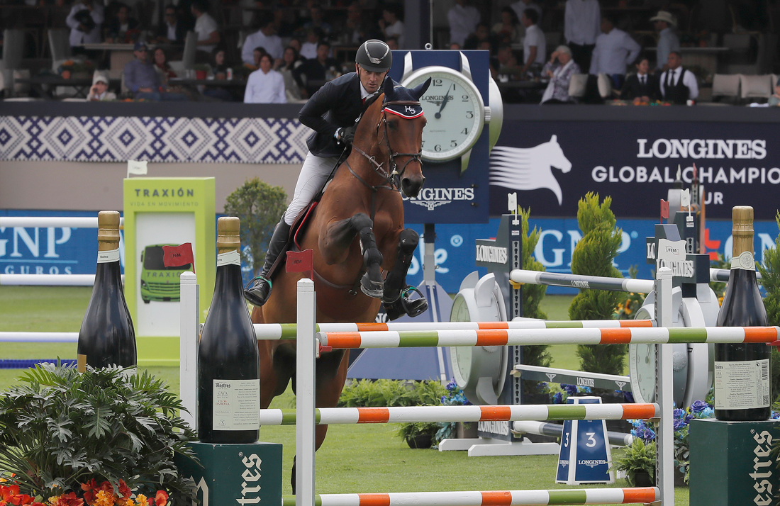 El brasileño Eduardo Pereira y el argentino Ignacio Maurin terminaron en la primera y segunda posición, respectivamente, en la prueba de salto 5 estrellas de 1.55 metros con la que arrancó el segundo día del Longines Global Champions Tour México.