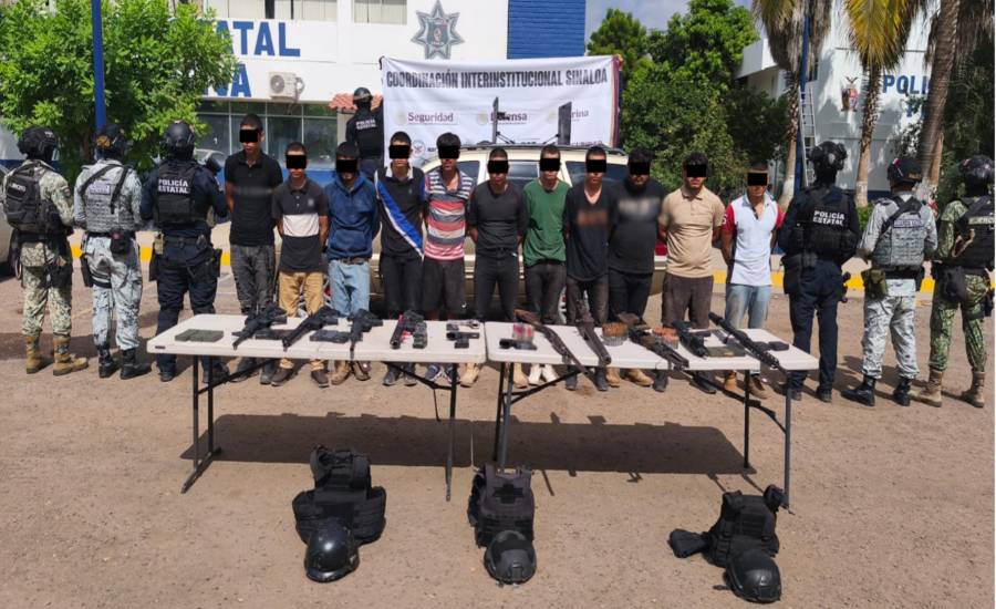 En Navolato, se detuvo a 11 personas y se aseguraron dos ametralladoras, 10 armas de fuego, 21 cargadores, 868 cartuchos, equipo táctico y dos vehículos, uno de ellos con blindaje artesanal.