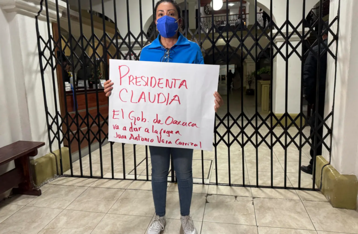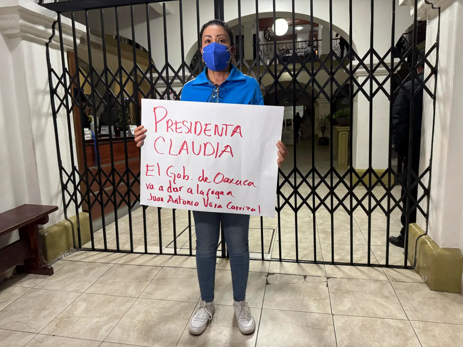 “Presidenta Claudia, el Gobierno de Oaxaca va a dar a la fuga a Juan Antonio Vera Carrizal”, se leía en su mensaje escrito sobre un cartel.