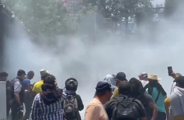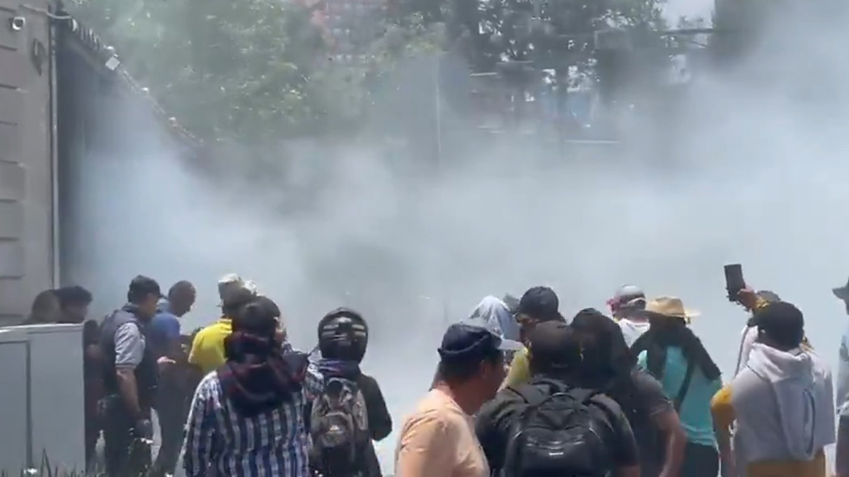 Un grupo de entre 5 y 6 personas intentó irrumpir en la sede de la Segob, lo que generó que policías que custodiaban el recinto accionaran extintores para dispersar a los involucrados.