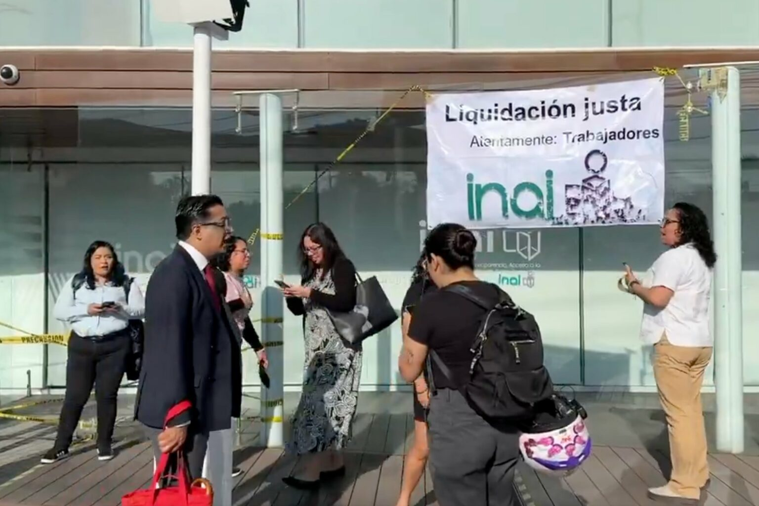 Trabajadores del INAI han realizado protestas esta semana para exigir su finiquito y tener certeza en su futuro laboral ante la inminente extinción del órgano autónomo en los próximos días.