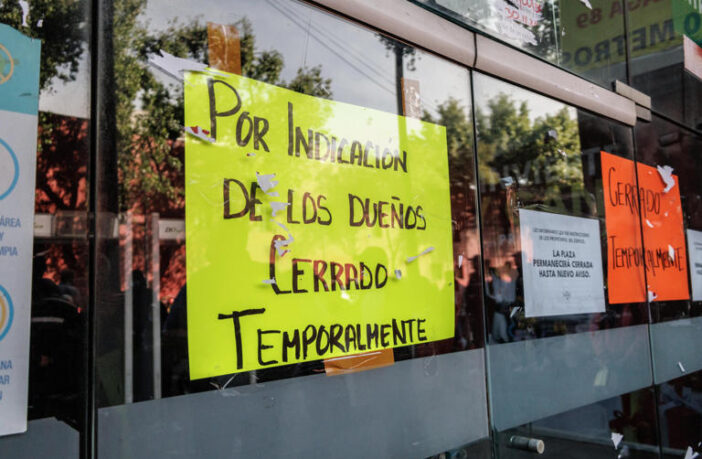 “Les informamos que por instrucciones de los propietarios del edificio la Plaza permanecerá cerrada hasta nuevo aviso”, dice uno de los letreros que atraviesan las puertas de este inmueble.