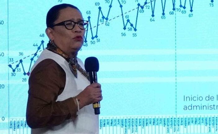 “En cuanto al homicidio doloso, seguimos intensificando las acciones con los gobiernos estatales y municipales y se tiene una reducción de 18%” desde el comienzo del Gobierno de Andrés Manuel López Obrador, en diciembre de 2018, argumentó Rodríguez al respecto.